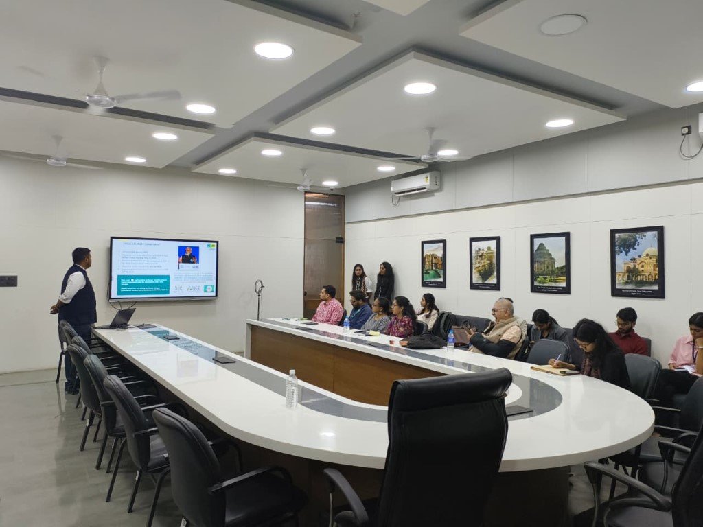 As part of the knowledge-sharing sessions, Mr. Devas Pathak, Senior Project Officer, ICLEI South Asia, led an engaging interactive session on Climate Action Planning in India. Using Vadodara city as a case study, he explained the process of developing a Net-Zero Climate-Resilient City Action Plan, covering urban systems gap analysis, climate risk and vulnerability assessments, Global Protocol for Community (GPC)-compliant Greenhouse gases (GHG) emissions inventories, and climate resilience strategies and targets. The session engaged more than 50 students and faculty members from various universities, helping bridge theory with real-world climate planning. It also educated students on institutionalising climate actions within regular planning processes by establishing net-zero cells and by preparing and implementing climate budgets.