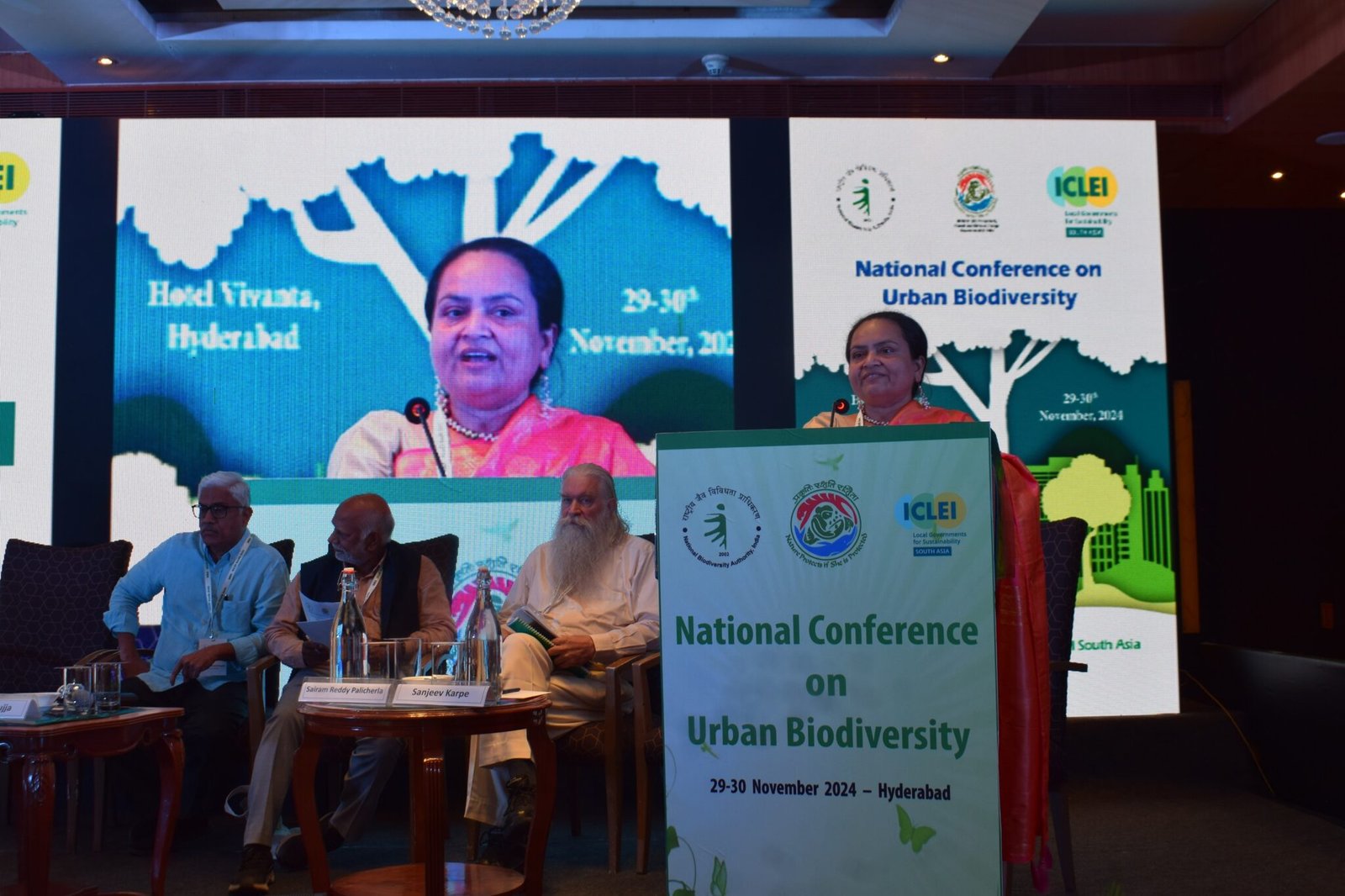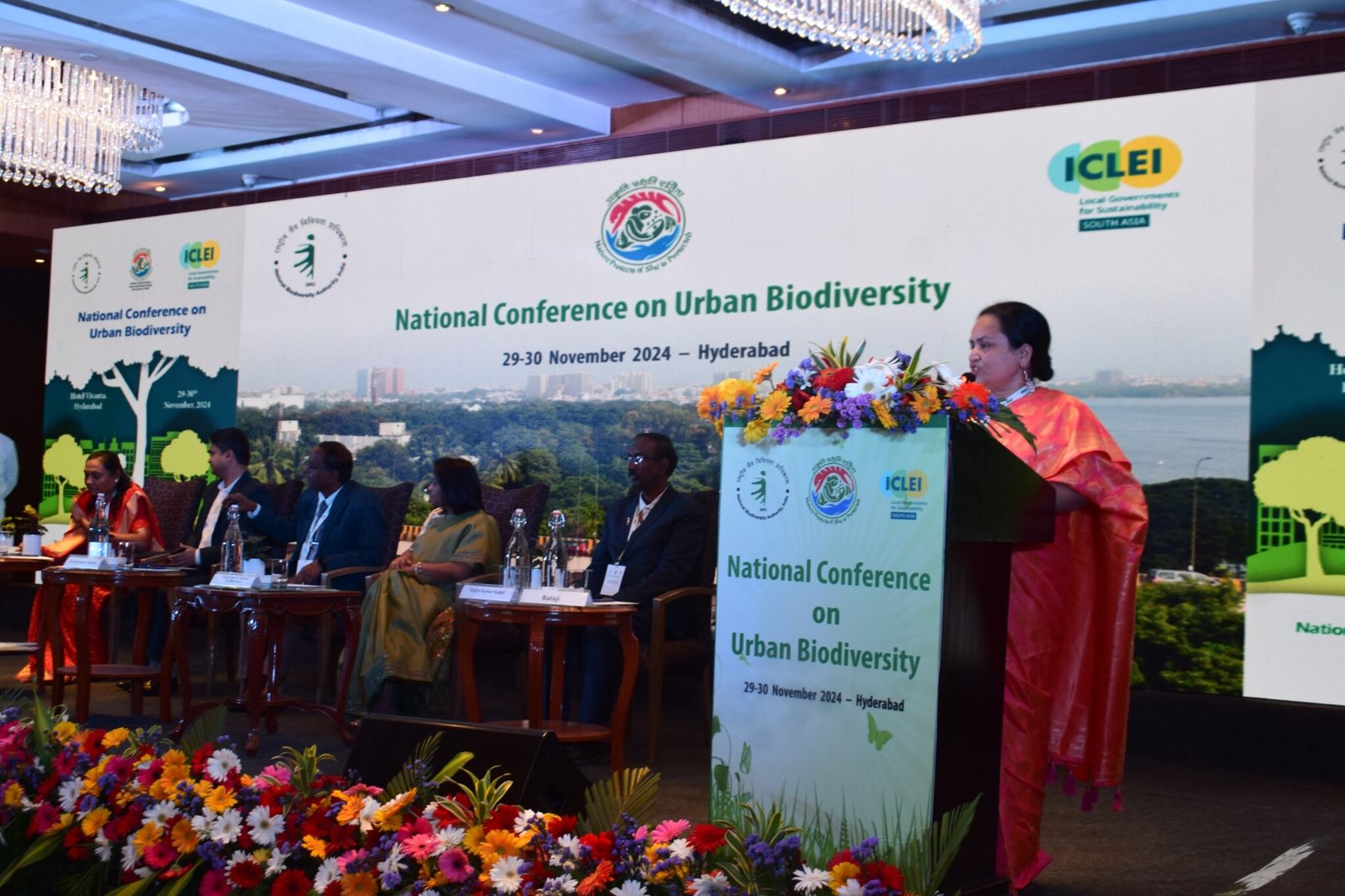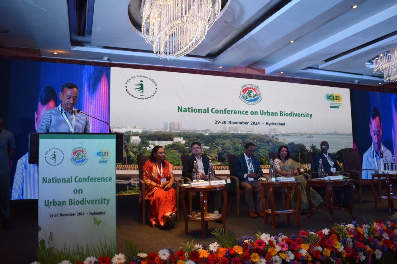 ICLEI – Local Governments for Sustainability, South Asia, in collaboration with the National Biodiversity Authority, organised a two-day national conference on urban biodiversity. The conference was held on 29 and 30 November 2024 in Hyderabad. The event saw the participation of over 200 delegates, bringing together mayors, municipal commissioners, policymakers, environmental experts, forest officials, and urban planners from 35 cities in India to discuss the pressing issue of biodiversity conservation in urban environments.