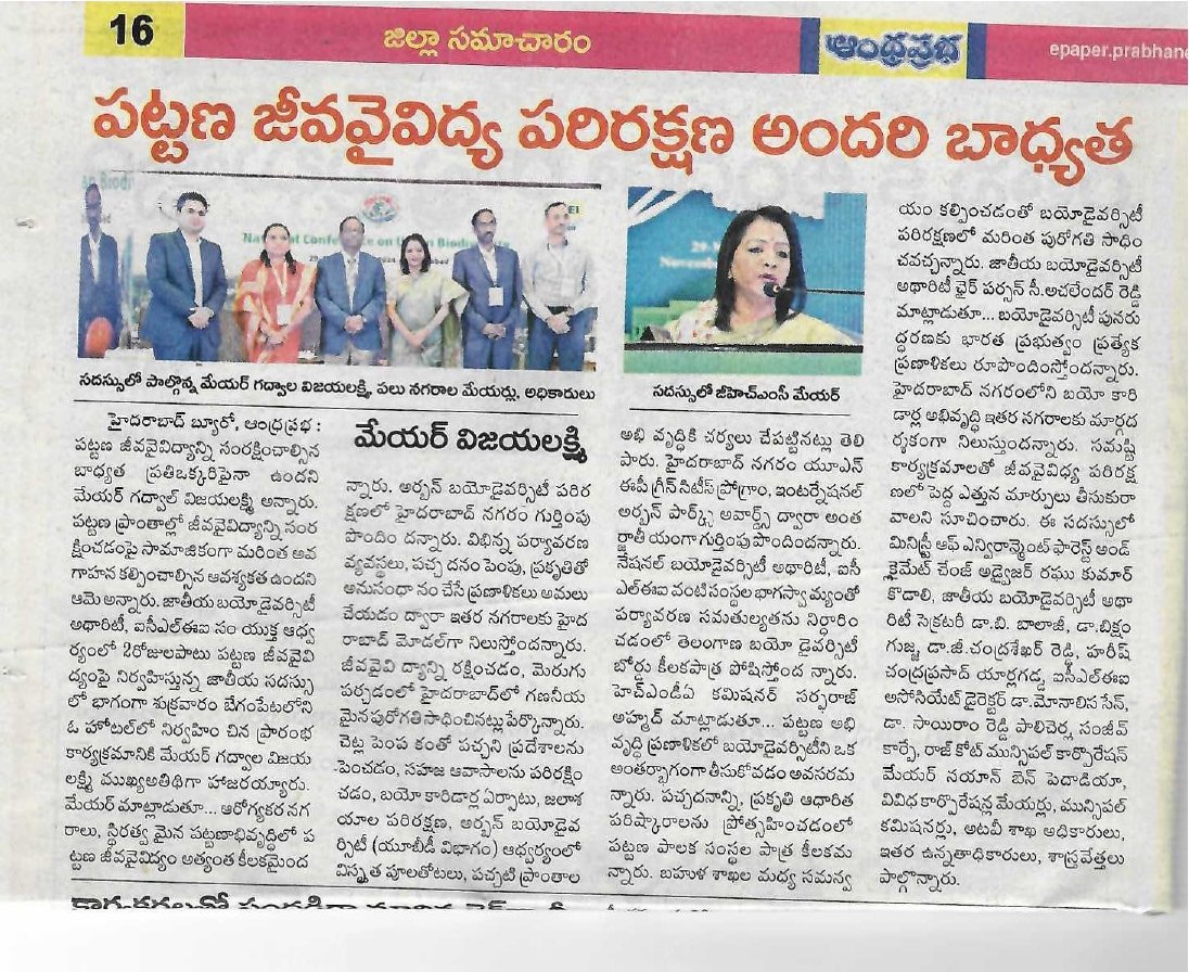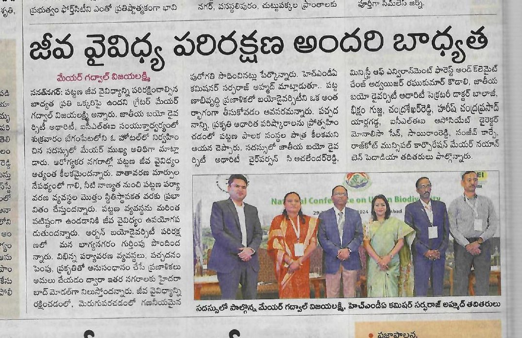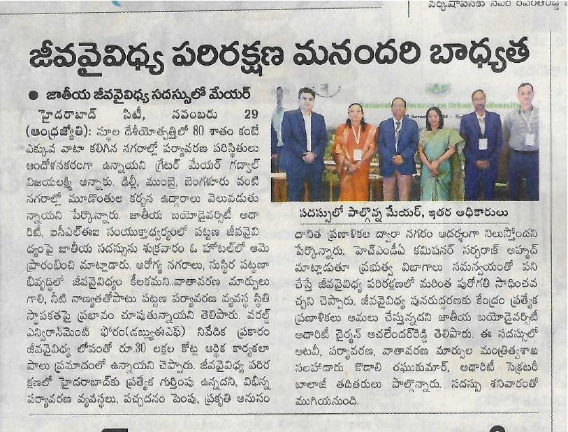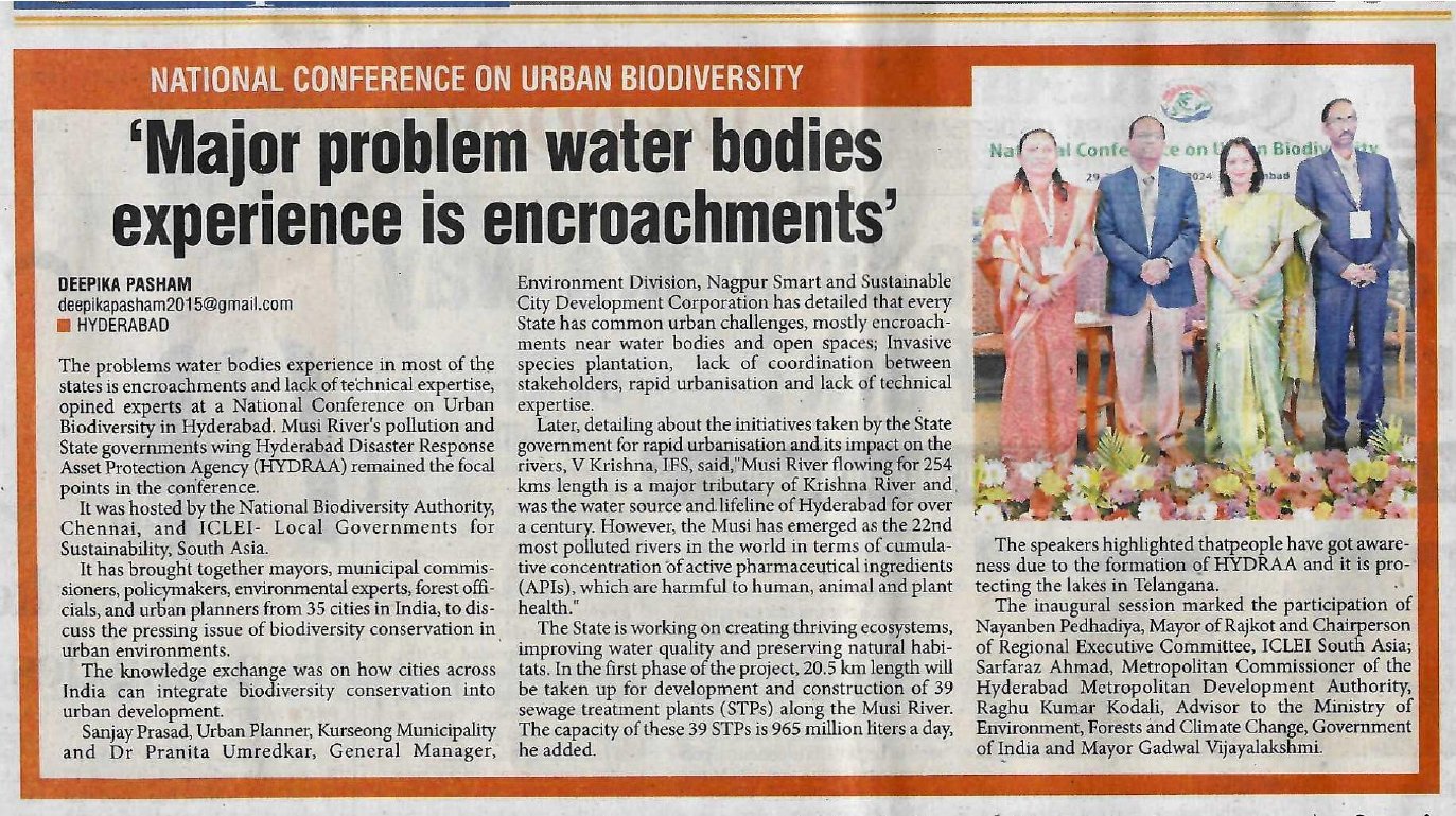 ICLEI – Local Governments for Sustainability, South Asia, in collaboration with the National Biodiversity Authority, organised a two-day national conference on urban biodiversity. The conference was held on 29 and 30 November 2024 in Hyderabad. The event saw the participation of over 200 delegates, bringing together mayors, municipal commissioners, policymakers, environmental experts, forest officials, and urban planners from 35 cities in India to discuss the pressing issue of biodiversity conservation in urban environments.