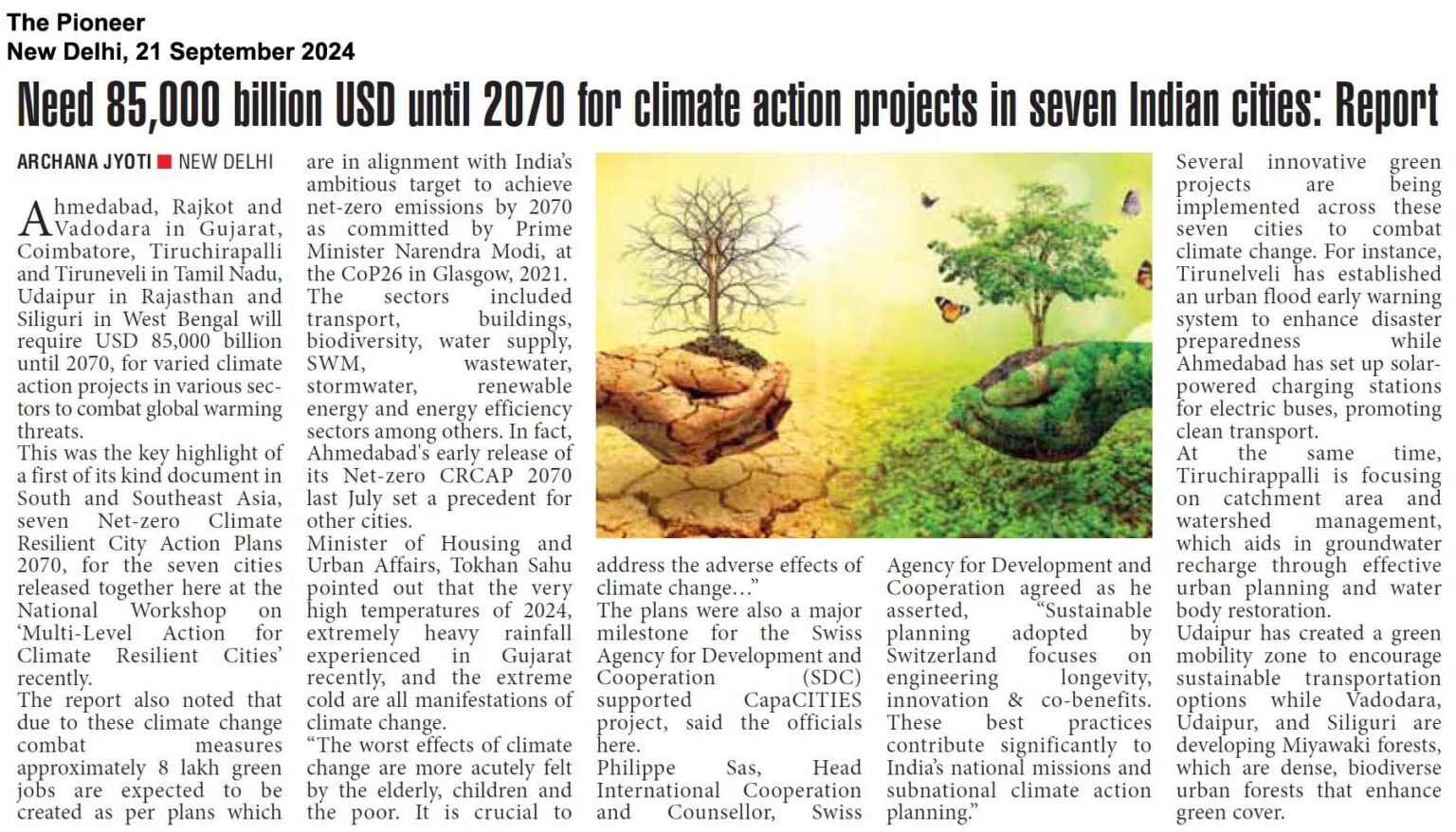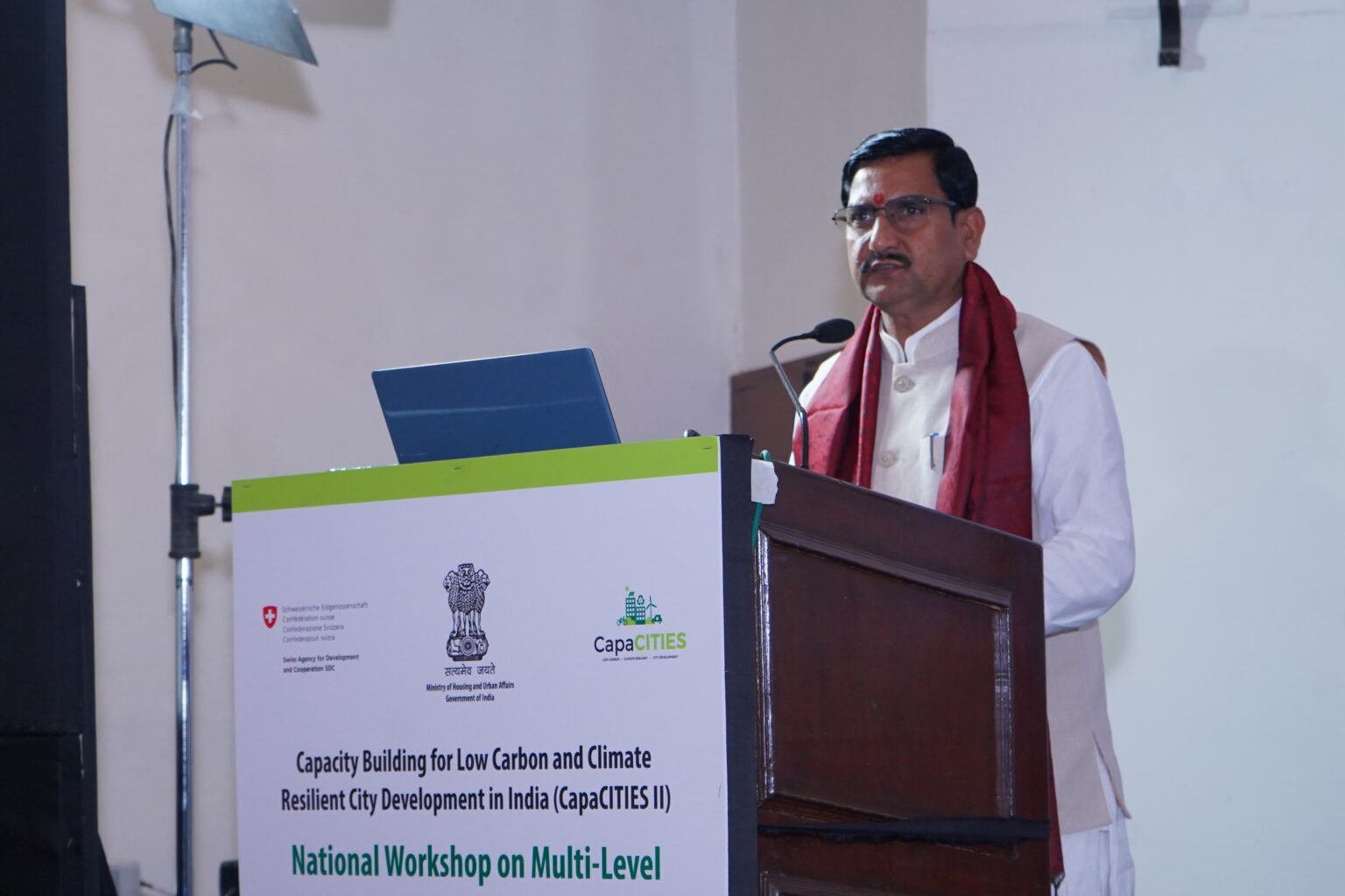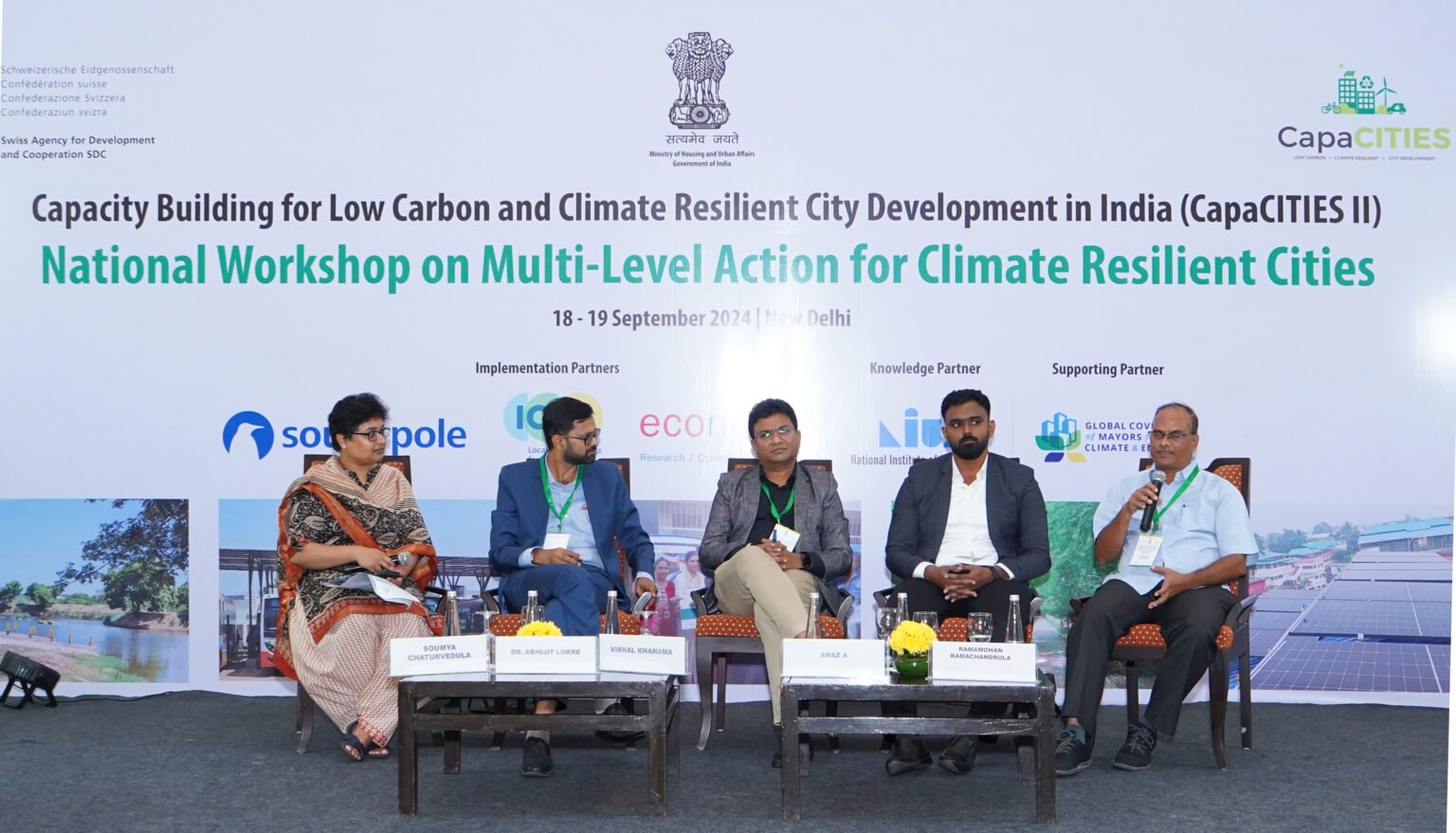 - The key highlight of the event was the Launch of the 7+1 Climate resilient city action plans, presided over by Shri Tokhan Sahu, Hon’ble Minister of State, Ministry of Housing and Urban Affairs, Government of India. The launch was also attended by Shri Rahul Kapoor, Joint Secretary, MoHUA, Government of India and Mission Director, Smart Cities Mission, Shri Philippe Sas, Head of International Cooperation and Counsellor, SDC, Dr Debolina Kundu, Director, NIUA.