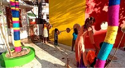 A key idea was to transform the chowk into a space for children during the day and to use it for organised parking of vehicles at night. Among the proposals were the setting up of a learning-cum-play track to allow children to cycle and play a few traditional lawn games, painting of walls with graffiti and games that they would be able to relate to and engage with, and weaving of colourful threads around tree trunks to transform this space into a bright, interactive and engaging corner.