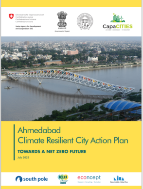 Ahmedabad Climate Resilient City Action Plan – Towards A Net Zero Future was led by Ahmedabad Municipal Corporation and developed jointly with the implementing partners of the “Capacity Building for Low Carbon and Climate Resilient City Development-phase II (CapaCITIES II)” Project, supported by the Swiss Agency for Development and Cooperation (SDC). Ahmedabad is one of eight partner cities of the CapaCITIES II project, being implemented by ICLEI-Local Governments for Sustainability, South Asia, the South Pole Group, and econcept AG, with the National Institute of Urban Affairs (NIUA) as a knowledge partner. CLICK HERE TO VIEW