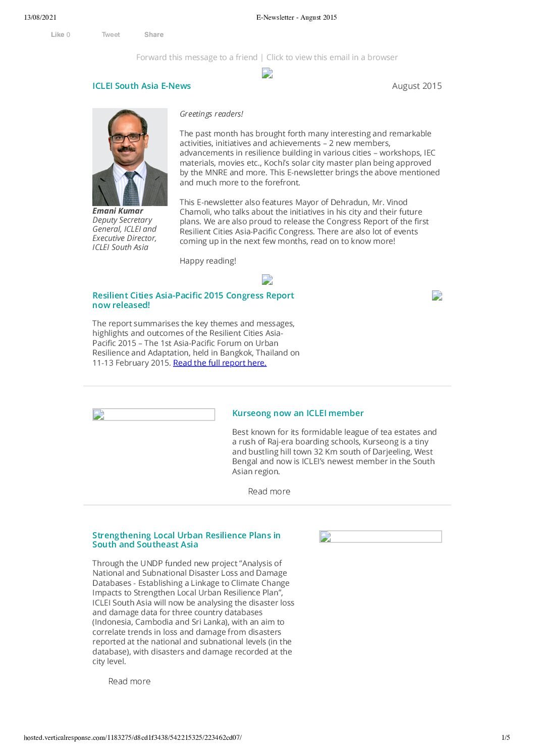ICLEI South Asia E-news August 2015