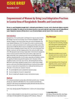Issue Brief – Empowerment of Women by Using Local Adaptation Practices in Coastal Area of Bangladesh: Benefits and Constraints